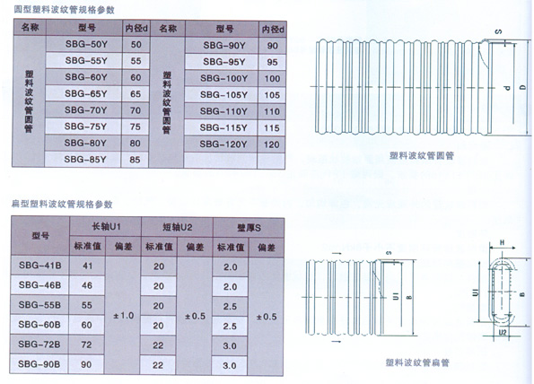 示例:1.內徑為50mm的圓形塑料波紋管型號SBG--50Y