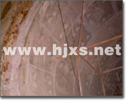 4.1.2基面處理 基面處理采用兩種方法。明顯滲漏水部位采用鑿孔注漿堵水(注漿材料為微分子納米混合防水堵漏材料或水溶性聚氨酯),其他部位滲水采取快凝水泥封堵?炷郤H外滲劑與425#普通硅酸鹽水泥按比例混合,或用雙快水泥。然后進行封堵。水泥凝結時間調節在2min左右。