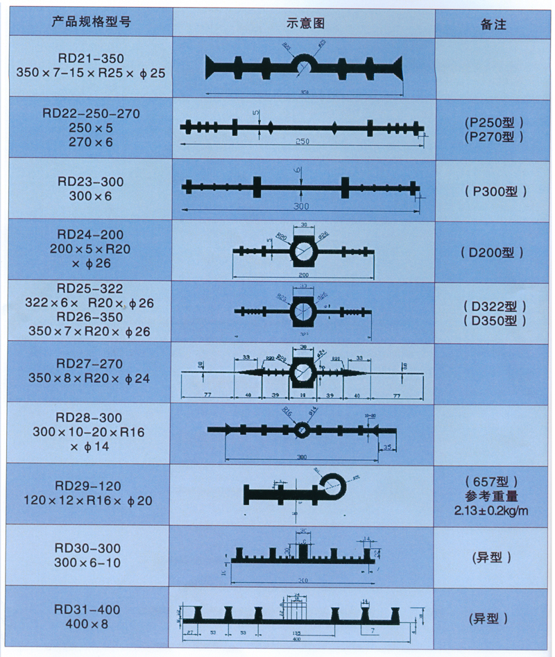 300×6橡膠止水帶,300×8橡膠止水帶,300×10橡膠止水帶,300×12橡膠止水帶,300×15橡膠止水帶,300×20橡膠止水帶;350×6橡膠止水帶,350×8橡膠止水帶,350×10橡膠止水帶,350×12橡膠止水帶,350×15橡膠止水帶,350×20橡膠止水帶;400×6橡膠止水帶,400×8橡膠止水帶,400×10橡膠止水帶,400×12橡膠止水帶,400×15橡膠止水帶,400×20橡膠止水帶;500×8橡膠止水帶,500×10橡膠止水帶,500×12橡膠止水帶,500×15橡膠止水帶,500×20橡膠止水帶;600×8橡膠止水帶,600×10橡膠止水帶,600×12橡膠止水帶,600×15橡膠止水帶,600×20橡膠止水帶;322×6橡膠止水帶,322×8橡膠止水帶,322×10橡膠止水帶,322×12橡膠止水帶;280×6橡膠止水帶,280×8橡膠止水帶,280×10橡膠止水帶,280×12橡膠止水帶,280×15橡膠止水帶,280×20橡膠止水帶;290×6橡膠止水帶,290×8橡膠止水帶,290×10橡膠止水帶,290×12橡膠止水帶,290×15橡膠止水帶,290×20橡膠止水帶;450×6橡膠止水帶,450×8橡膠止水帶,450×10橡膠止水帶,450×12橡膠止水帶,450×15橡膠止水帶,450×20橡膠止水帶;常用規(guī)格:CB200×5-20 CB250×6-30 CB300×6-30 CB350×8-30 CB500×10-50